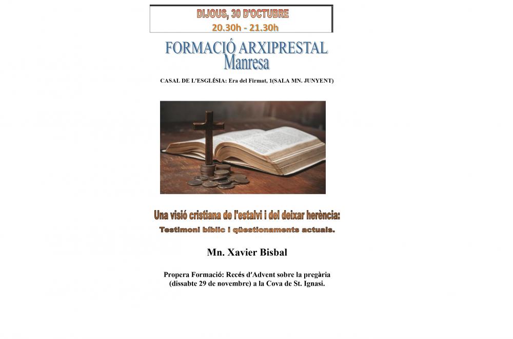 Xerrada a Manresa: "Una visió cristiana de l'estalvi i del deixar herència: Testimoni bíblic i qüestionaments actuals"