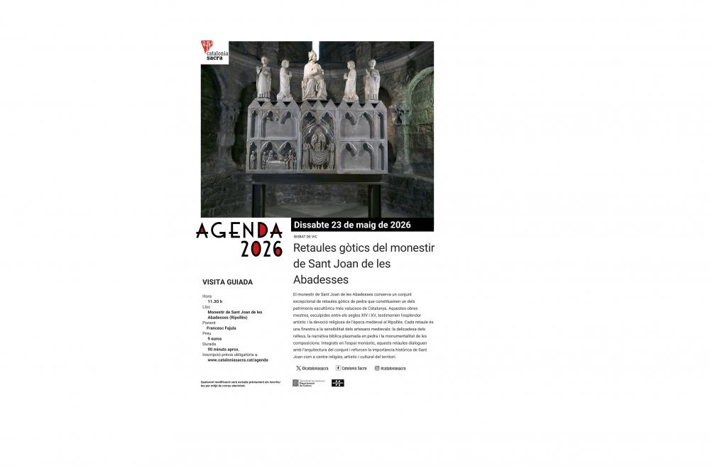 Aquesta activitat forma part de l’agenda 2026 de Catalonia Sacra, que al llarg de l’any, la programació inclou més de quaranta activitats en vint comarques de Catalunya i una del País Valencià.
