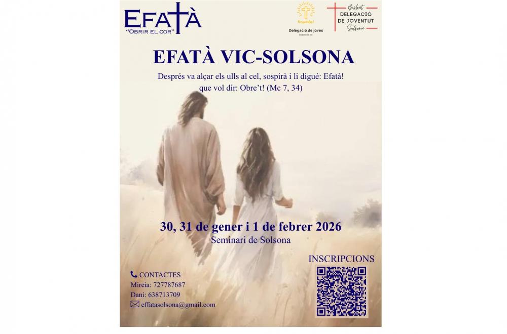 L’Efatà Vic-Solsona és impulsat per les delegacions de Joventut dels bisbats de Vic i de Solsona i s’inscriu en el marc de les propostes pastorals adreçades a joves que busquen aprofundir en la fe, el discerniment i la vida espiritual, a través de moments de pregària, reflexió, testimonis i convivència.